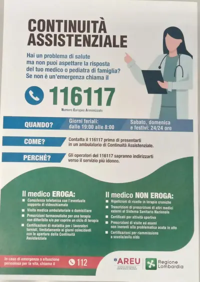Bisogna contattare il numero verde 116117 prima di recarsi alla Guardia Medica