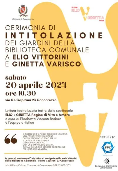 Sabato alle 16.30, presso la Biblioteca comunale di Concorezzo, si terrà una significativa cerimonia di intitolazione dei giardini a due illustri personalità: