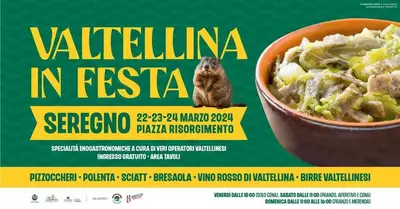 Dal 22 al 24 marzo 2024, la piazza Risorgimento di Seregno si animerà con i colori e i sapori della Valtellina, ospitando la 34ª edizione di "Valtellina in Festa".