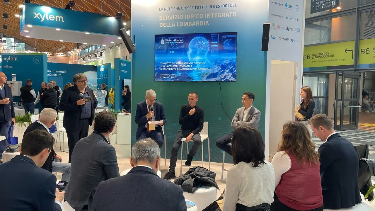 BrianzAcque presente anche quest'anno alla fiera riminese di Ecomondo 2024. Proprio la giornata di martedì 5 novembre, quella di apertura, ha visto tra i protagonisti l'azienda del servizio idrico integrato insieme alle "sorelle" Como Acqua, Lario Reti Holding e Secam che, in diversi momenti, hanno animato lo stand della rete Water Alliance - Acque di Lombardia.