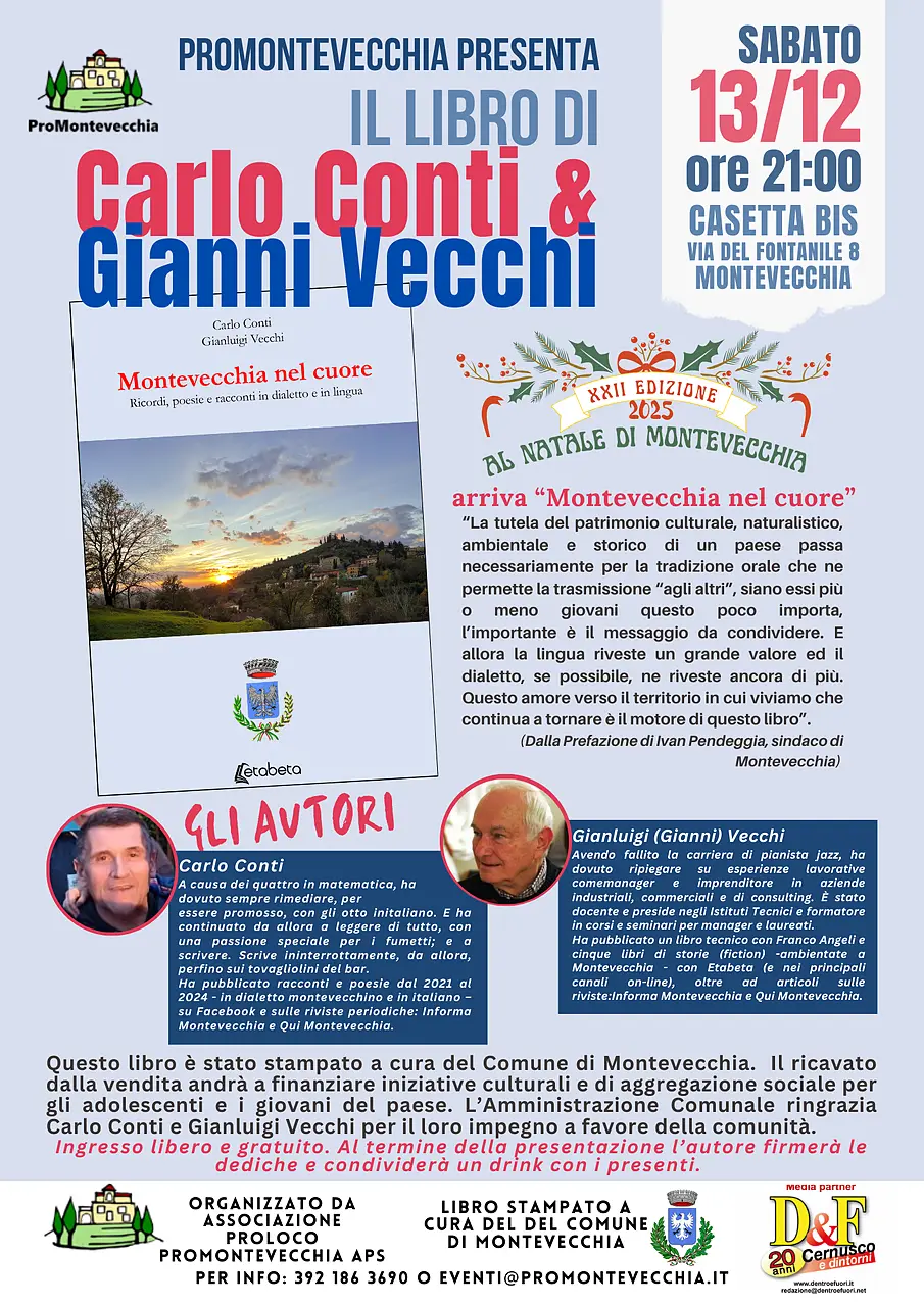 ProMontevecchia e l'Amministrazione Comunale ringraziano sentitamente gli autori, Carlo Conti e Gianluigi Vecchi, per il loro impegno disinteressato e per aver messo la loro passione letteraria a favore della comunità.