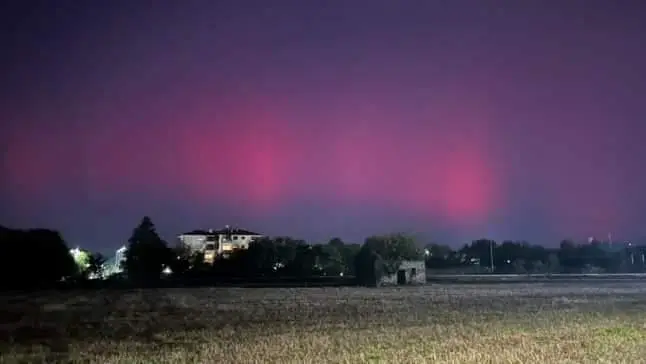 Il cielo, già avvolto nell'oscurità della sera, si è improvvisamente tinto di sfumature rosa pastello, regalando ai fortunati osservatori lo spettacolo inusuale dell'aurora boreale a latitudini insolitamente meridionali.