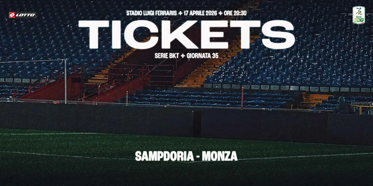 AC Monza informa che sono disponibili, in prevendita, i biglietti riservati ai tifosi ospiti che vorranno assistere alla 35^ giornata di Campionato Serie BKT, Sampdoria - Monza, in programma venerdì 17 aprile alle ore 20:30 allo Stadio Luigi Ferraris.