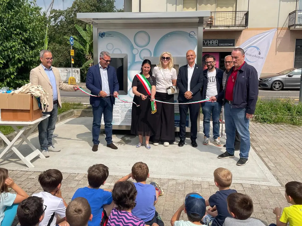 Taglio del nastro in via degli Abeti per il nuovo chiosco BrianzAcque: acqua gratuita, meno plastica e coinvolgimento delle scuole per educare alla sostenibilità