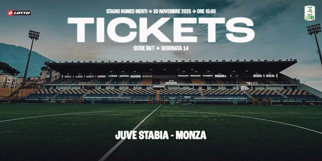 AC Monza informa che sono disponibili in prevendita i biglietti riservati ai tifosi ospiti che vorranno assistere alla 14^ giornata di Campionato Serie BKT, Juve Stabia - Monza, in programma domenica 30 novembre alle ore 15:00 allo Stadio Romeo Menti.
