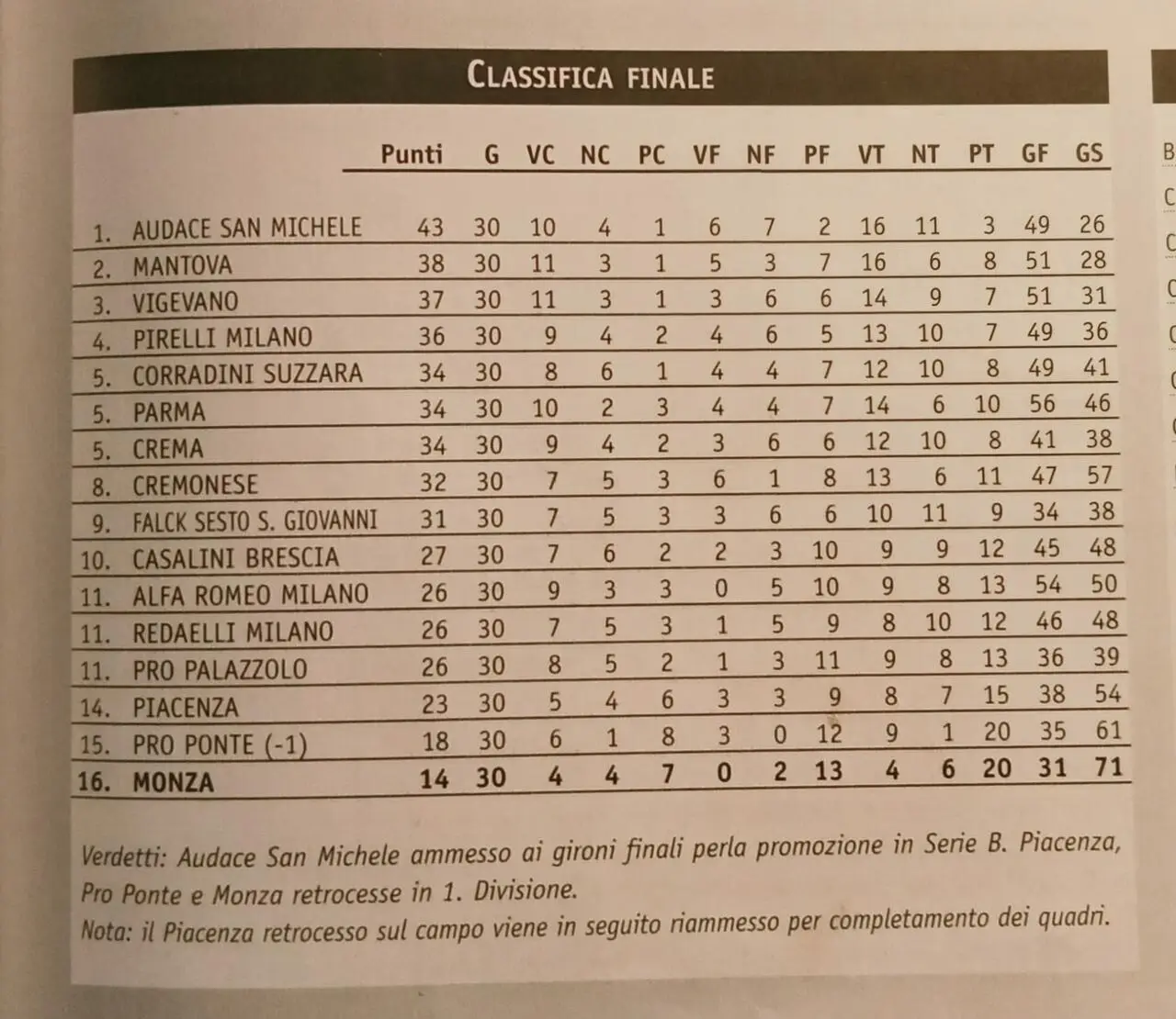 Il primato negativo di punti dopo 23 partite è di un Monza di 84 anni fa