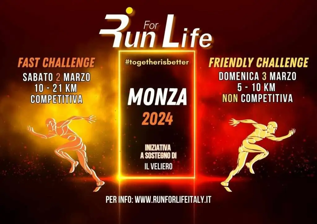 Sabato 2 marzo sarà dedicato alle gare competitive, con la Fast Challenge 10 e 21 km, entrambe omologate e inserite nel calendario Fidal nazionale. Si tratta di una novità assoluta per l'edizione 2024, che ha voluto arricchire la parte sportiva con una nuova distanza di 21 km, per attrarre un numero ancora maggiore di atleti. "La Run for Life è per noi uno degli eventi podistici più importanti - ha commentato Viviana Guidetti, assessore allo Sport del Comune di Monza - Questa nuova proposta sono certa che sarà capace di portare nella nostra città e nel nostro bellissimo parco molti corridori, che potranno godere di un percorso veloce e sicuro".
