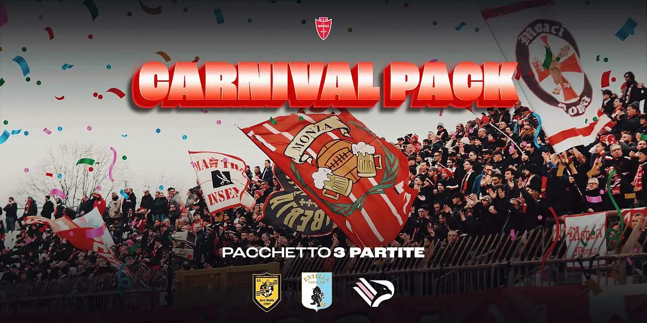 AC Monza comunica che dalle ore 12:00 di mercoledì 4 febbraio sarà in vendita il Carnival Pack, che comprende le tre importanti gare casalinghe contro Juve Stabia, Virtus Entella e Palermo a un prezzo scontato rispetto all’acquisto dei biglietti per le singole partite.