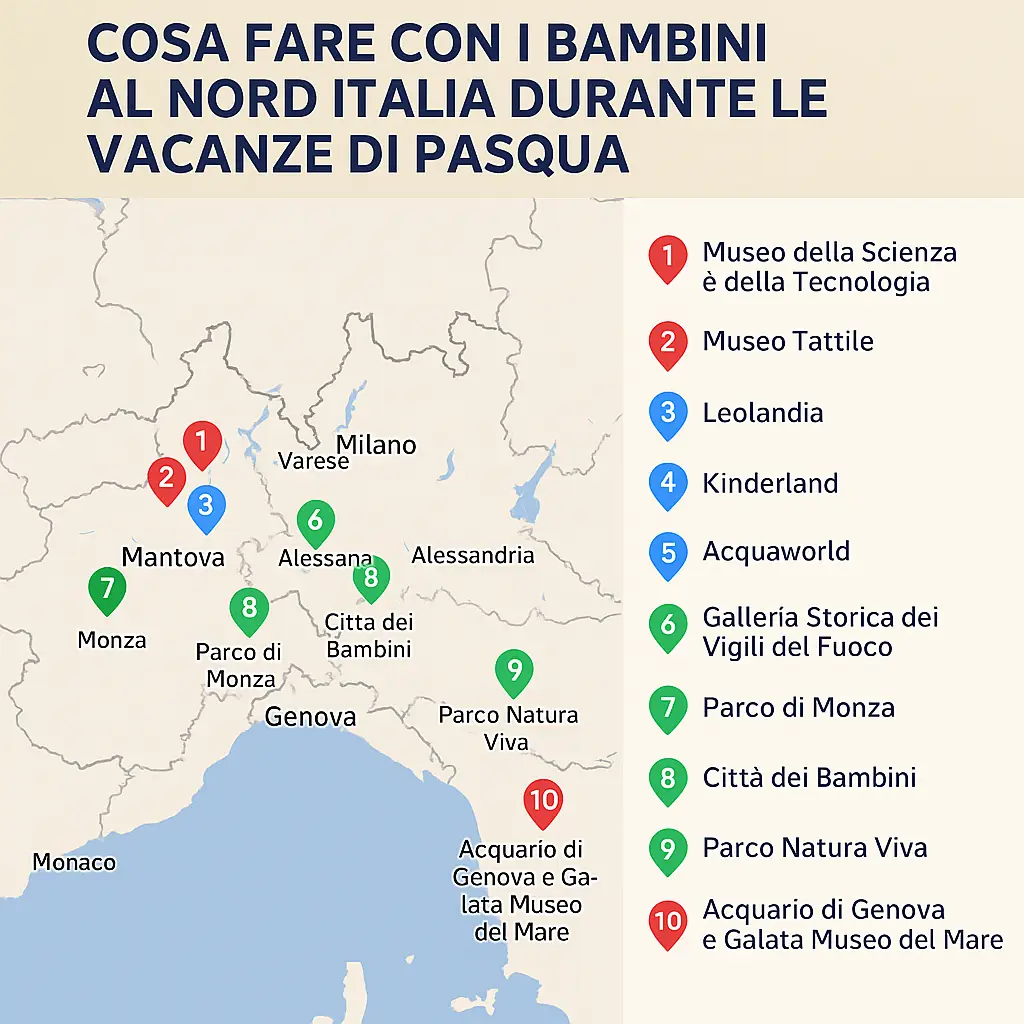 In Piemonte, non può mancare una visita alla Città dei Bambini di Alessandria, una struttura pensata per il gioco educativo. In Veneto, il Parco Natura Viva di Bussolengo (VR) permette ai più piccoli di vedere da vicino animali da tutto il mondo in un contesto immersivo.