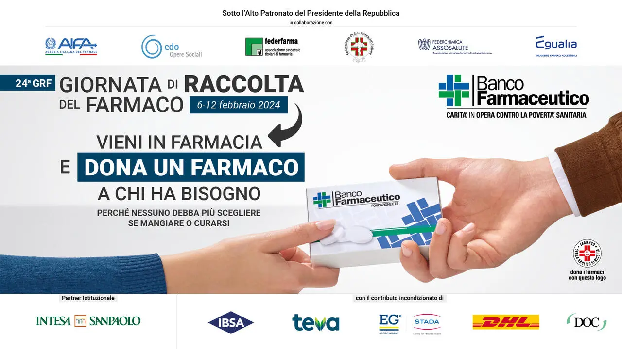 La GRF - Giornata di Raccolta del Farmaco si svolge dal 6 al 12 febbraio in oltre 5.600 farmacie italiane. I cittadini sono invitati a donare medicinali da banco per le persone in povertà sanitaria.
