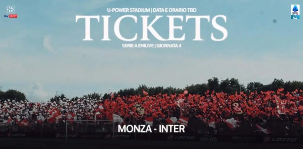 AC Monza informa i propri tifosi che a partire dalle ore 10:00 di lunedì 26 agosto saranno disponibili i biglietti per la 4^ giornata di Campionato Serie A Enilive, Monza – Inter, in programma per domenica 15 settembre (data e ora in attesa di conferma da parte della Lega di Serie A).