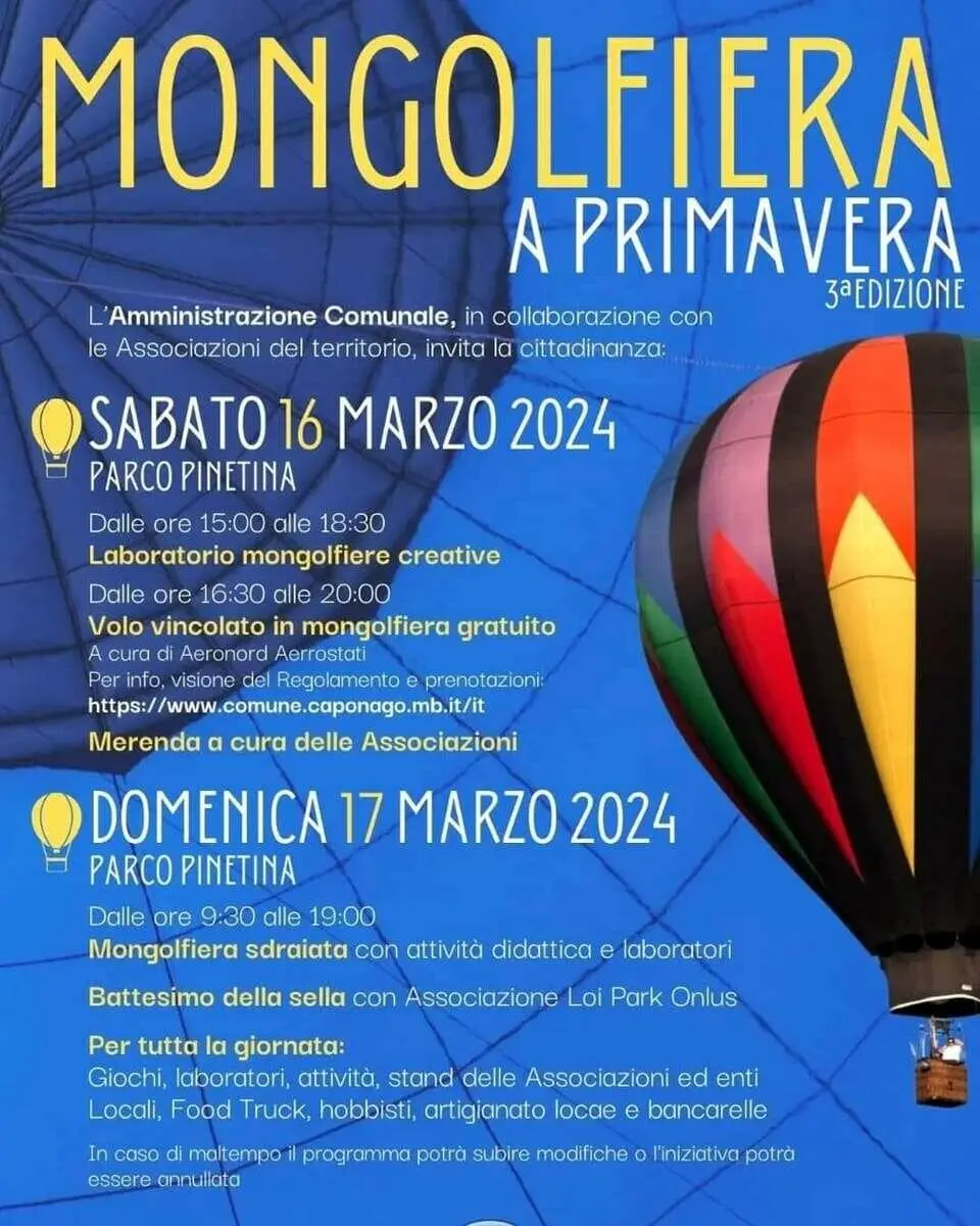 Caponago si prepara a riaccendere la magia con la terza edizione di "Mongolfiere a Primavera", un evento che ha saputo conquistare il cuore dei suoi visitatori. Un appuntamento che segna l'inizio della bella stagione con un'esplosione di colori e di emozioni.
