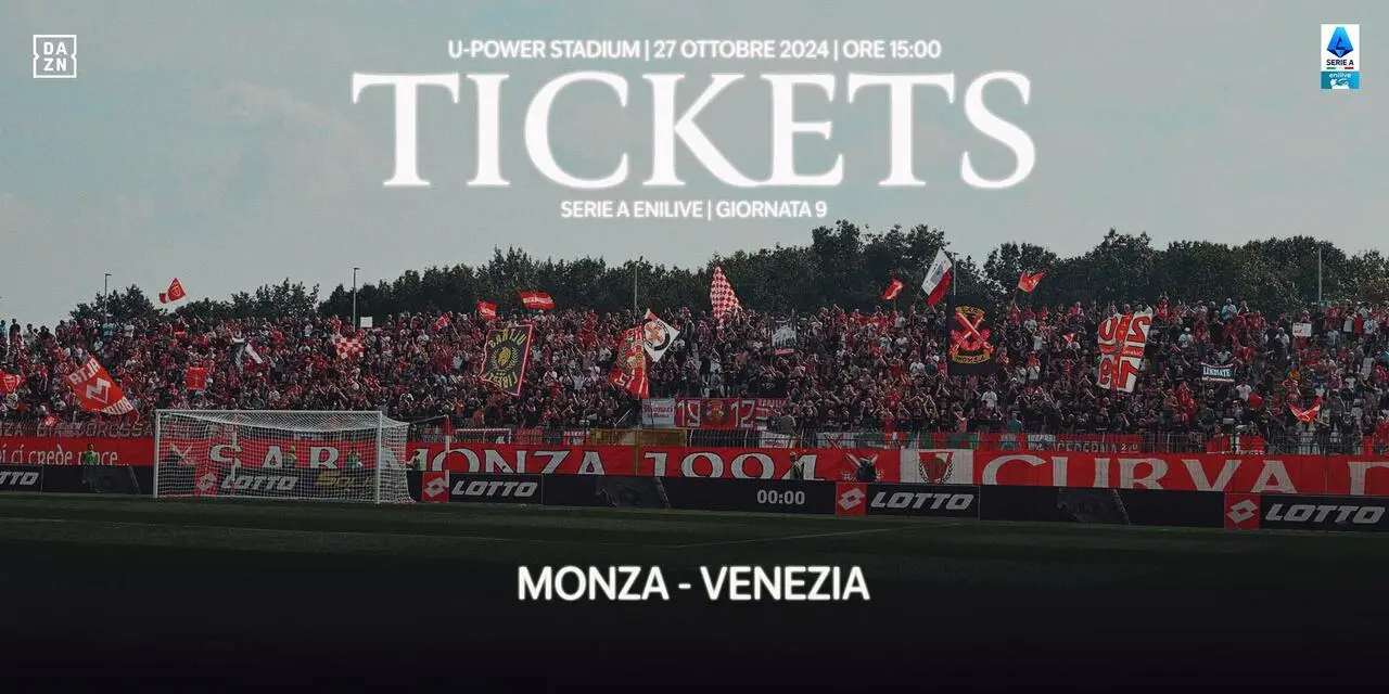 AC Monza informa i propri tifosi che a partire dalle ore 10:00 di mercoledì 9 ottobre saranno disponibili i biglietti in prevendita per la 9^ giornata di Campionato Serie A Enilive, Monza – Venezia, che si disputerà domenica 27 ottobre alle ore 15:00.