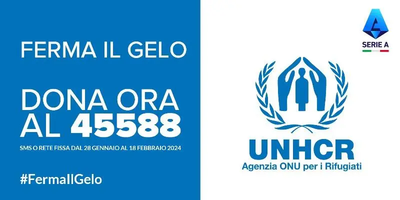 In occasione della 23a giornata di Serie A Tim (dal 2 al 5 febbraio) in collaborazione con la Lega Serie A, verrà promossa la Campagna “Ferma il gelo”, lanciata dall’ Agenzia ONU per i Rifugiati – UNHCR che ha l’obiettivo di raccogliere fondi per assicurare aiuti per l’inverno a milioni di rifugiati e sfollati.