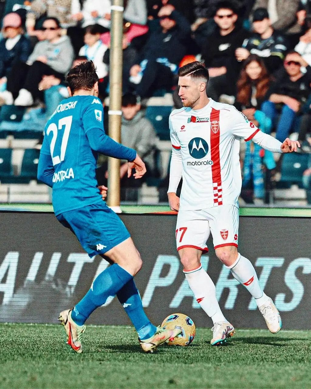 2' - Empoli in completo azzurro, Monza in maglia away bianca con la banda rossa