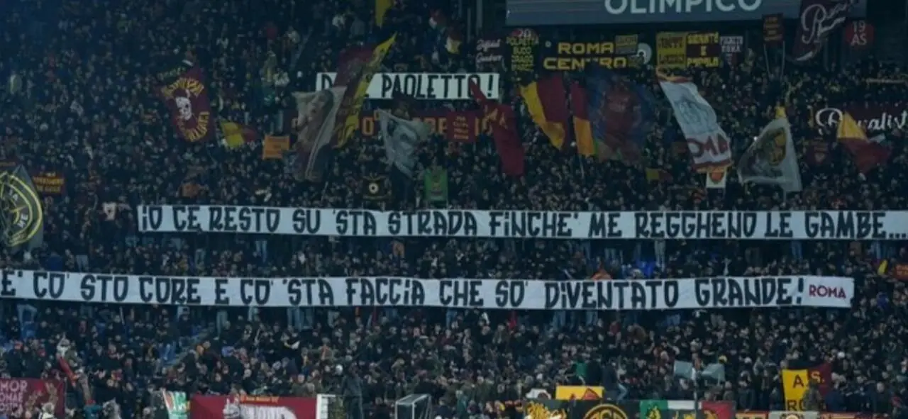 Durante la partita tra Roma e Monza, disputata allo stadio Olimpico, è apparso in Curva Sud uno striscione con una citazione riconducibile a un brano del gruppo musicale di estrema destra "Innato Senso di Allegria". Il testo recitava: "Io ce resto su 'sta strada finché mer reggheno le gambe. È co 'sto core e co' sta faccia che so' diventato grande".
