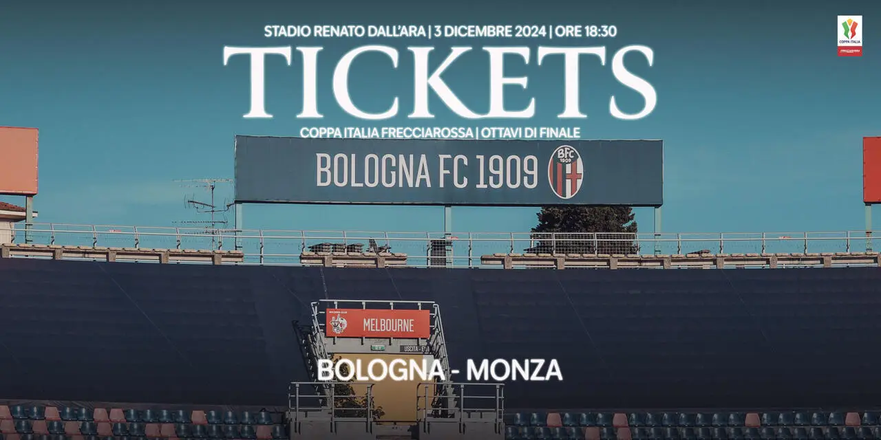AC Monza informa che sono disponibili i biglietti per gli Ottavi di Finale di Coppa Italia Frecciarossa, Bologna– Monza, che si disputerà martedì 3 dicembre alle ore 18:30 allo Stadio Renato Dall'Ara.