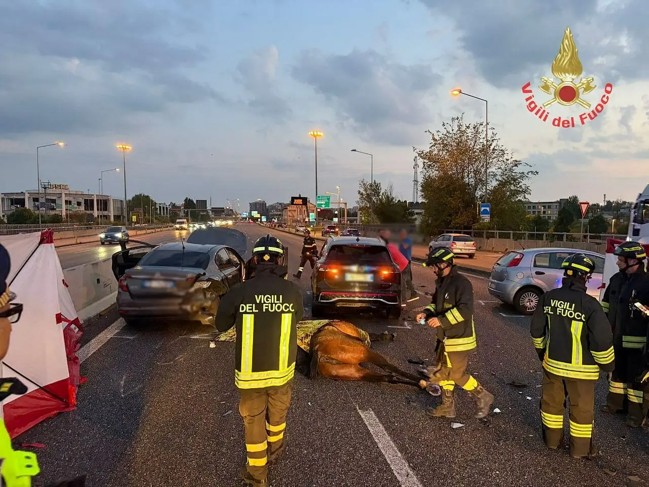 All’uscita della Galleria di Monza, la prima vettura in transito non sarebbe riuscita a evitare l’impatto con gli animali. Uno dei due cavalli è morto praticamente sul colpo, mentre il secondo è rimasto ferito, finendo contro l’auto e contribuendo a bloccare gli occupanti all’interno dell’abitacolo.
