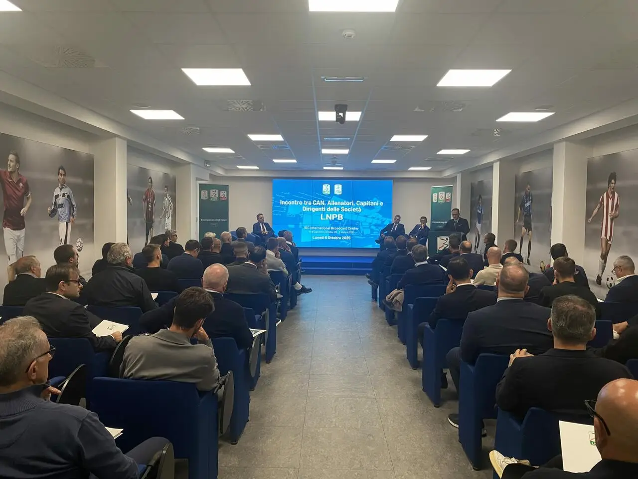 Incontro tra arbitri, allenatori, capitani e dirigenti della Serie BKT organizzato dalla Lega Serie B all’International Broadcast Center di Lissone, sede della distribuzione audiovisiva e del VAR Center. Numerosa la partecipazione delle società con oltre 50 persone presenti.