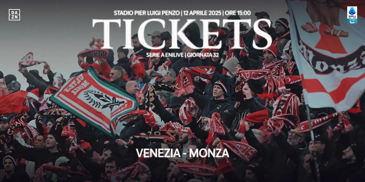 AC Monza informa che sono disponibili i biglietti riservati ai tifosi ospiti che vorranno assistere alla 32^ giornata di Campionato Serie A Enilive, Venezia - Monza, in programma sabato 12 aprile alle ore 15:00 allo Stadio Penzo.