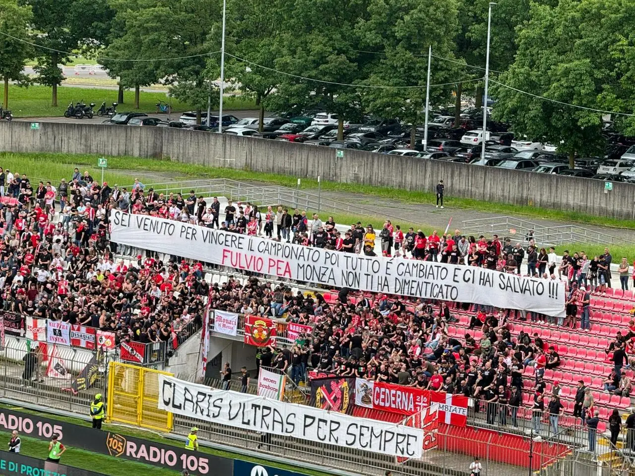 La Curva Pieri ringrazia Pea, che assiste alla gara che segna la retrocessione del Monza.