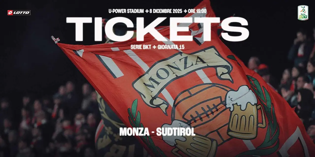 AC Monza comunica che sono disponibili i biglietti per la 15^ giornata di Campionato di Serie BKT Monza – Sudtirol che si disputerà all’U-Power Stadium lunedì 8 dicembre alle ore 15:00.
