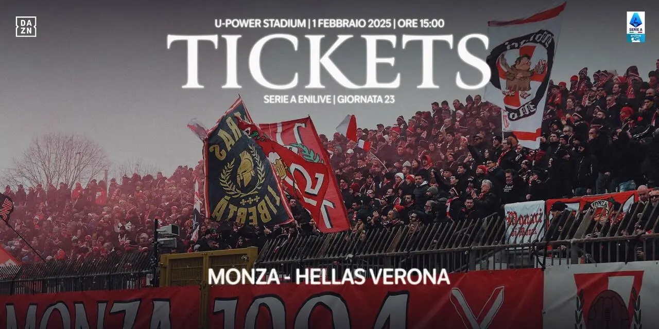 AC Monza informa i propri tifosi che a partire dalle ore 10:00 di mercoledì 15 gennaio saranno disponibili, in prevendita, i biglietti per la 23^ giornata di Campionato Serie A Enilive, Monza – Hellas Verona, che si disputerà sabato 1 febbraio alle ore 15:00.