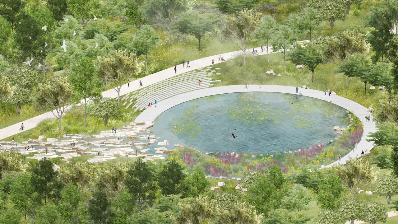Un’infrastruttura che risolve i problemi di allagamenti e restituisce ai cittadini un’oasi urbana multifunzionale.