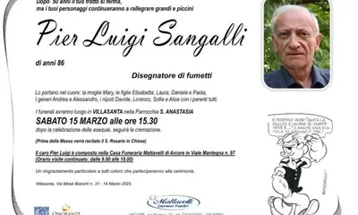 Si è spento a 86 anni Pier Luigi Sangalli, residente a Villasanta, storico disegnatori di fumetti.