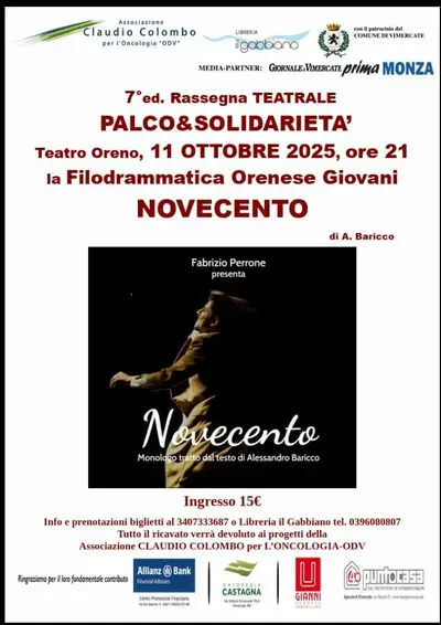 Un grande ritorno in Brianza: Novecento di Fabrizio Perrone apre la stagione a Vimercate con abbonamenti solidali per l’Oncologia.